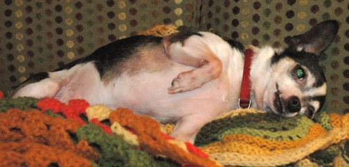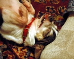 | The green eyed monster awaits her tummy rub. |
